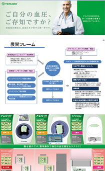 家電量販店店頭開発 テルモの一般消費者向け血圧計は家電量販店、ドラッグストアでの店頭陳列、店頭露出が課題だった。そこで、認知を高め購買につながる情報発信できる什器とパッケージを開発するために、消費者インサイト調査を活用したユーザニーズとメッセージの整理を行い、最も製品理解を高めて購買意欲を起こす店頭デザインを開発。